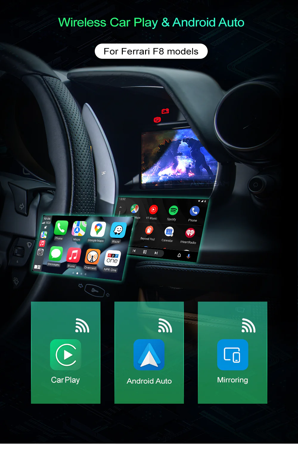 1.Wireless CarPlay: Connect via Bluetooth; transfer data using Wi-Fi.