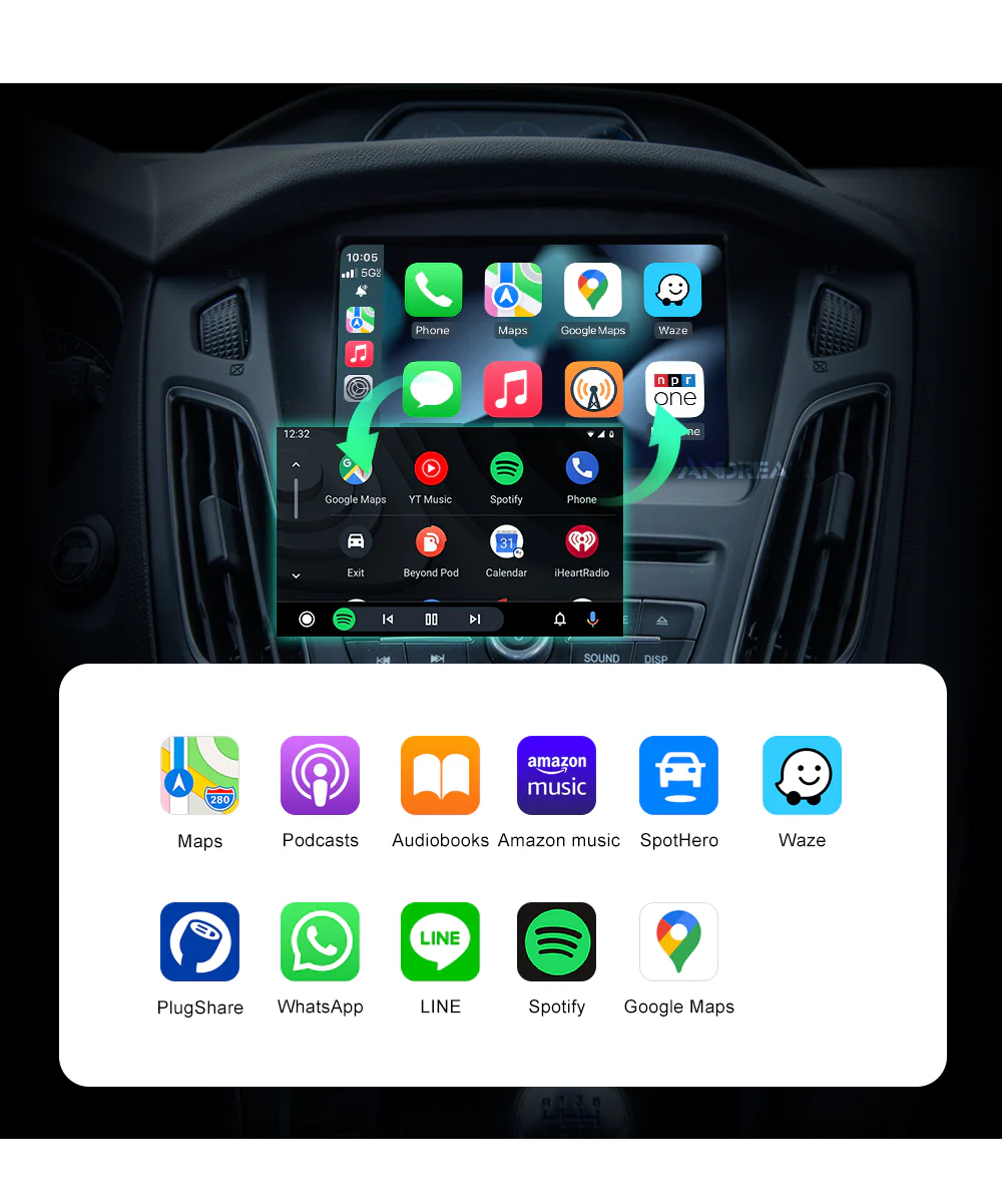 1. Work with wireless Apple CarPlay, pairing via Bluetooth, transfer via WIFI.