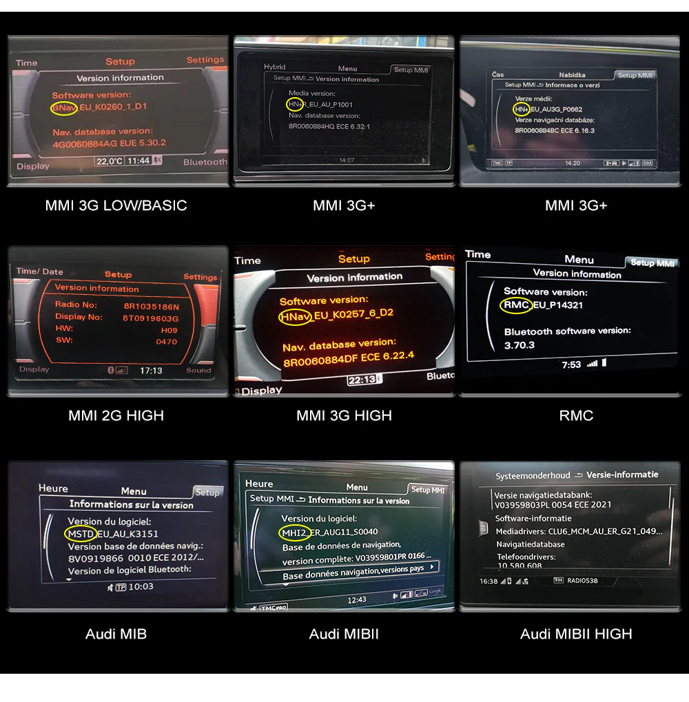 Compatible MMI: MMI 3G Plus, MMI 3G High,MMI 3G Basic ,MMI 2G High , MMI RMC, MMI MIB1, MMI MIB2, MMI MIB2 High, MMI MSTD, MMI MHI2