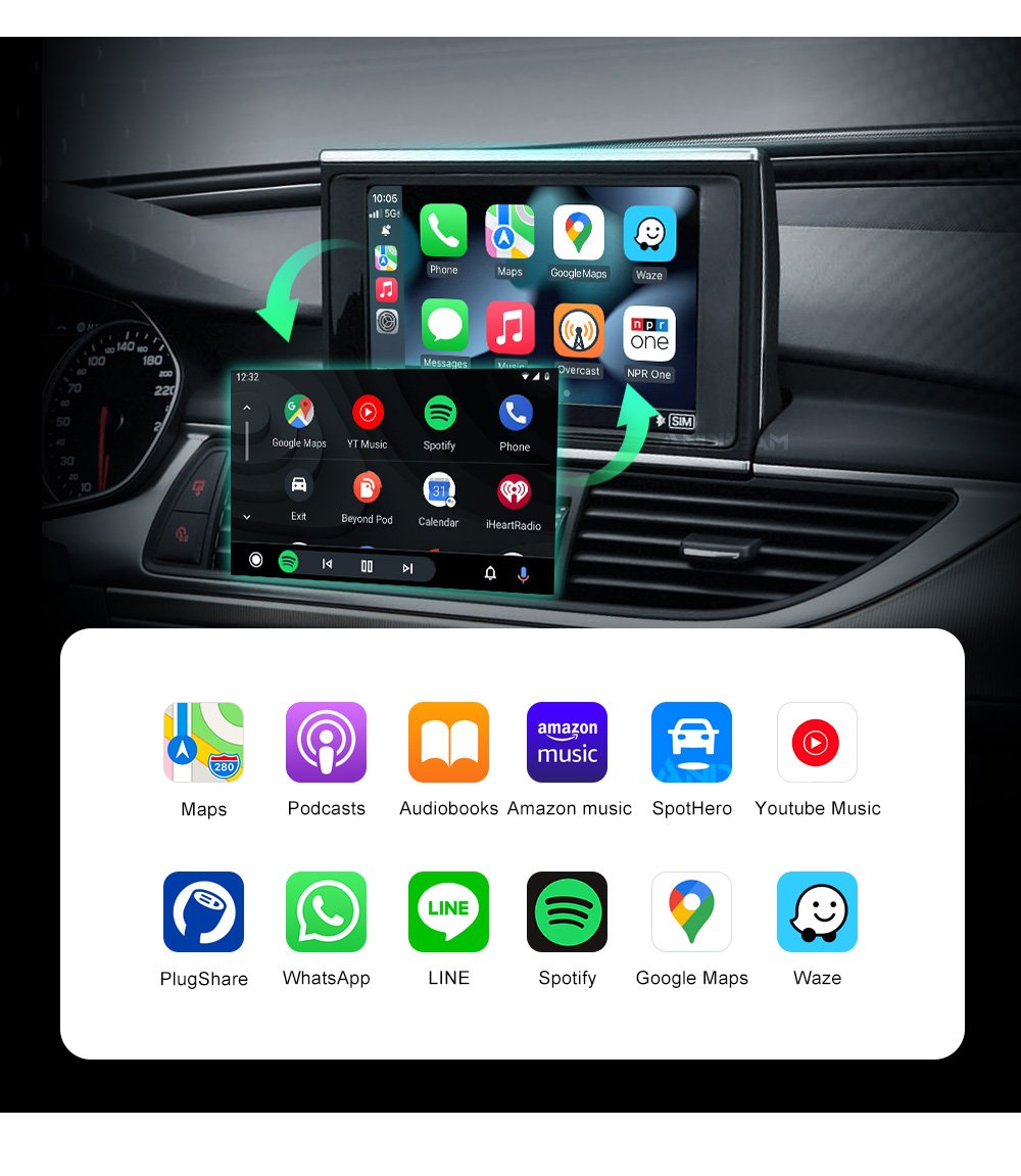 1. Work with wireless Apple CarPlay, pairing via Bluetooth, transfer via WIFI.