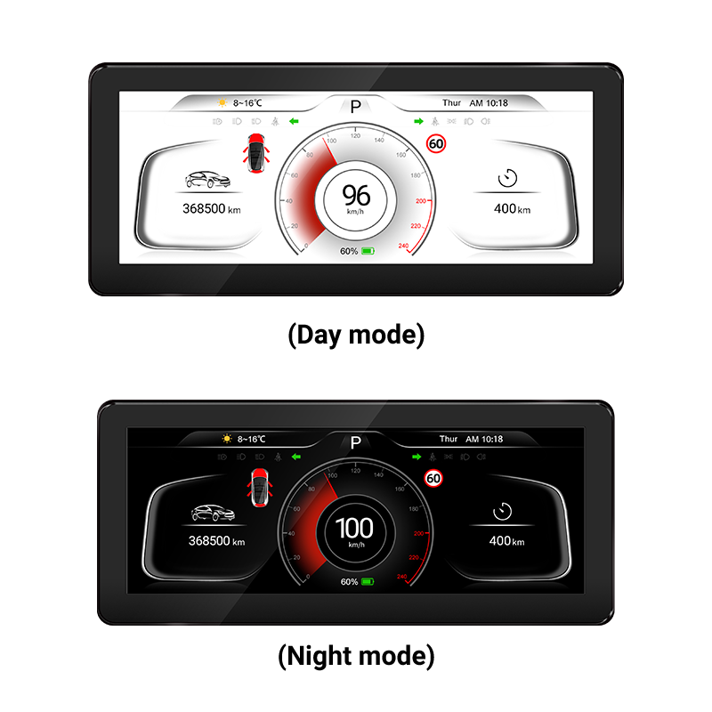 This is a Tesla LCD suspension instrument panel suitable for Model3/ModelY with 8.8-inch screen design, which is more suitable for the driver’s viewing angle. You can also adjust the position by flipping the screen angle to achieve the best display position.
