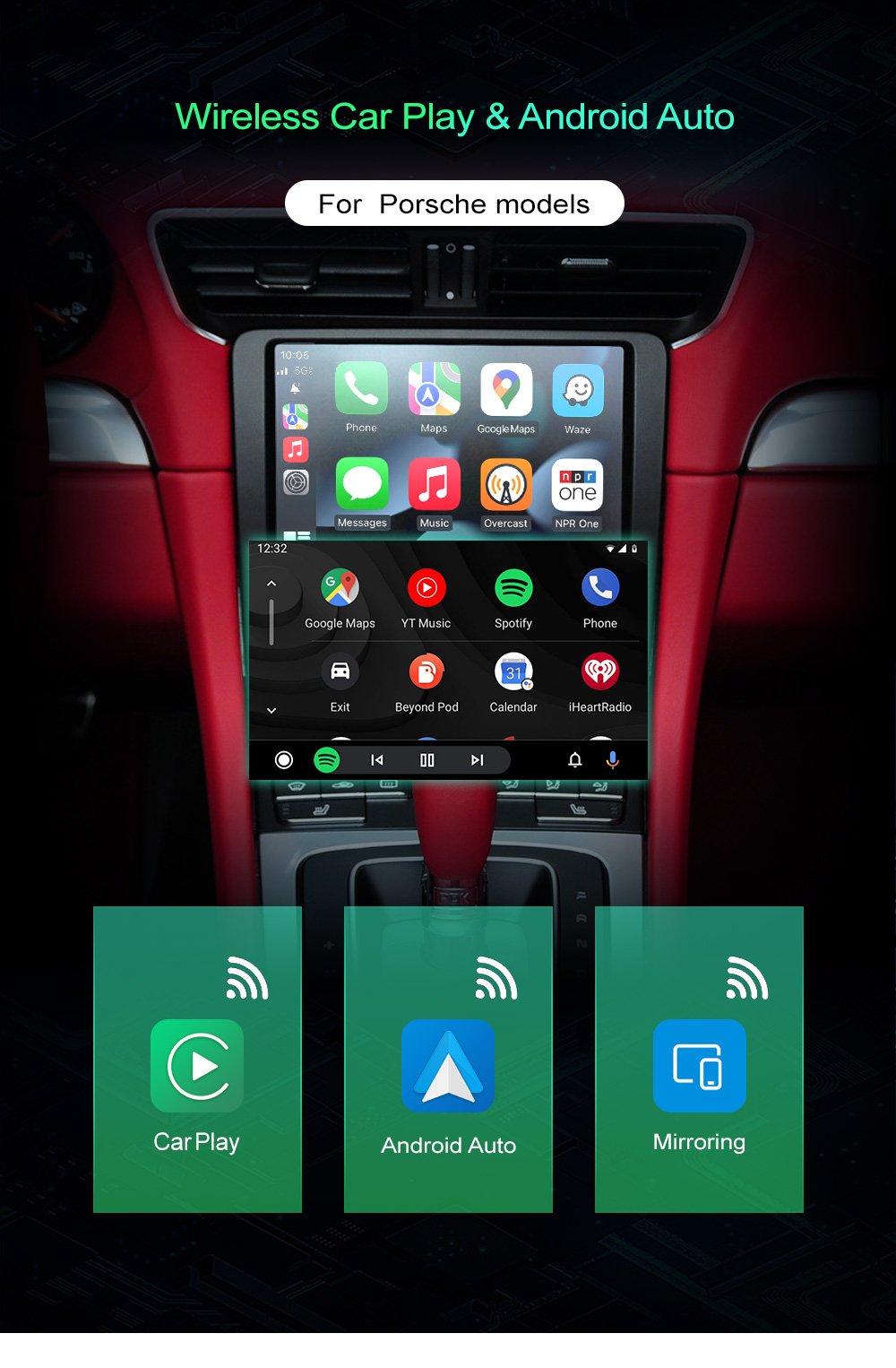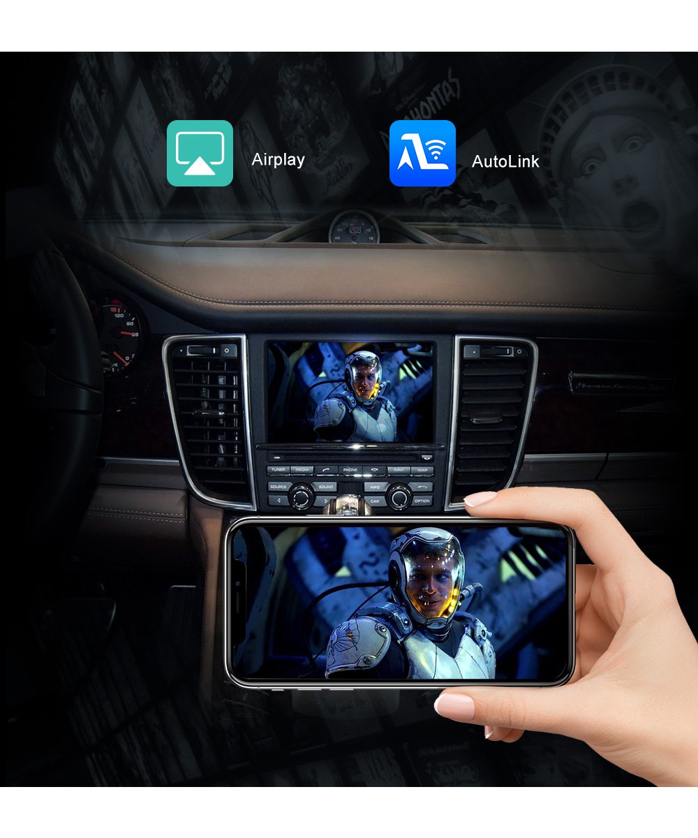 Supports wired & wireless mirroring functions for iphone and Android phones