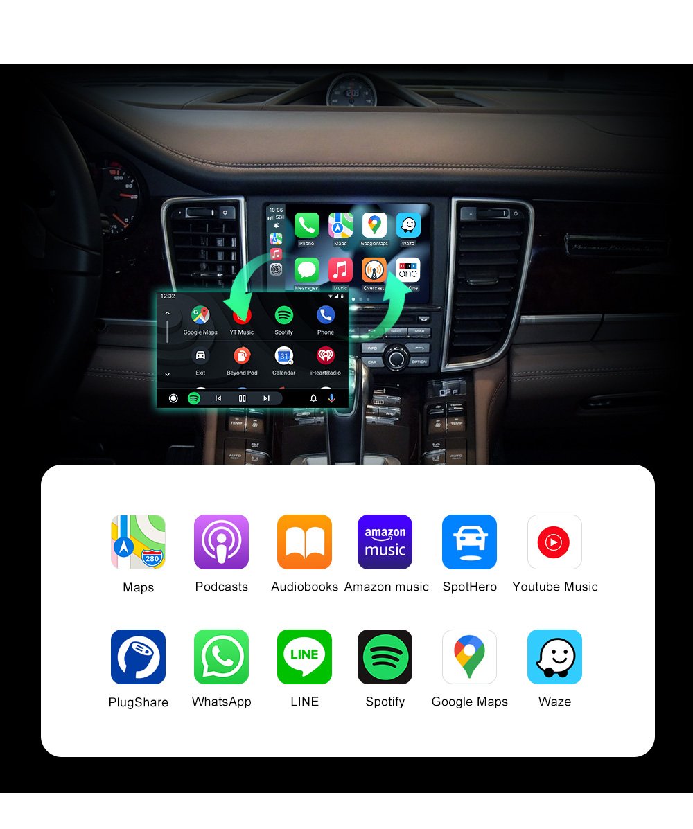 1. Work with wireless Apple CarPlay, pairing via Bluetooth, transfer via WIFI.