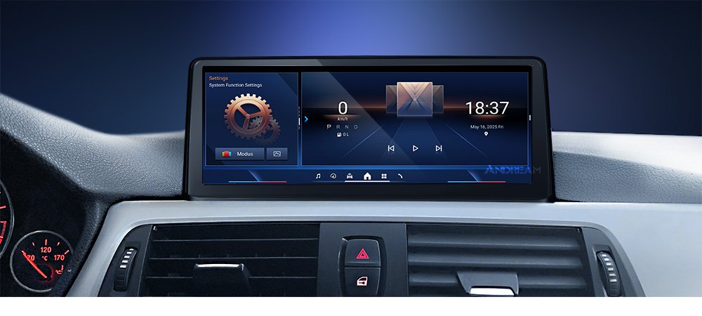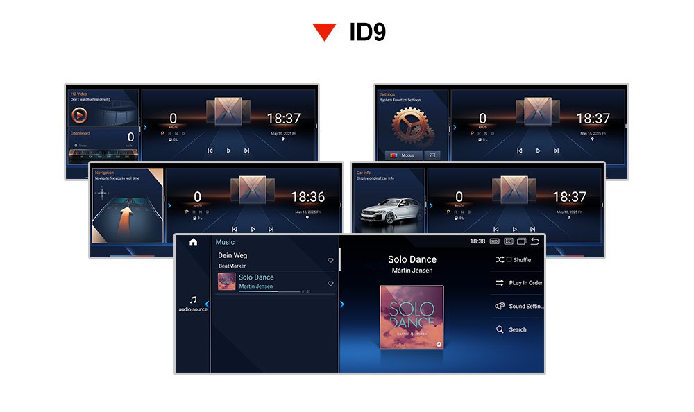 This BMW Android screen has the latest BMW ID8 UI, besides, ID8 UI is still available. You can freely set the UI you are interested in in the factory setting without upgrading the firmware.